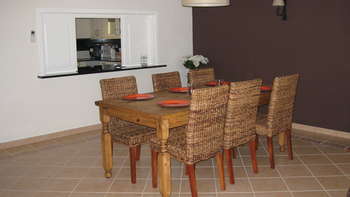 If you decide to eat indoors, there is a large dining table, which comfortably seats six. There is also a serving hatch, which makes serving food from the kitchen straightforward.